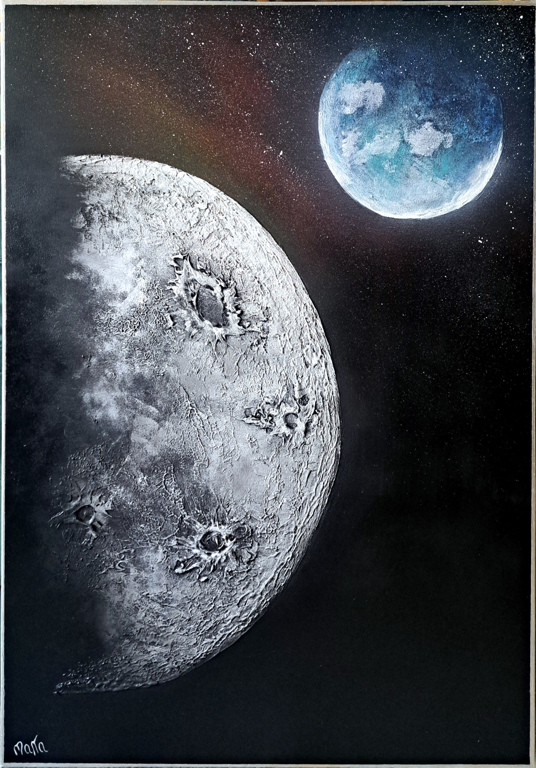 Tworzę obrazy strukturalne, dające efekt 3D, wykorzystuję również płynną farbę, kreując dynamiczne, nieoczywiste formy.